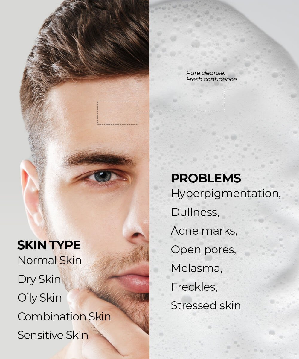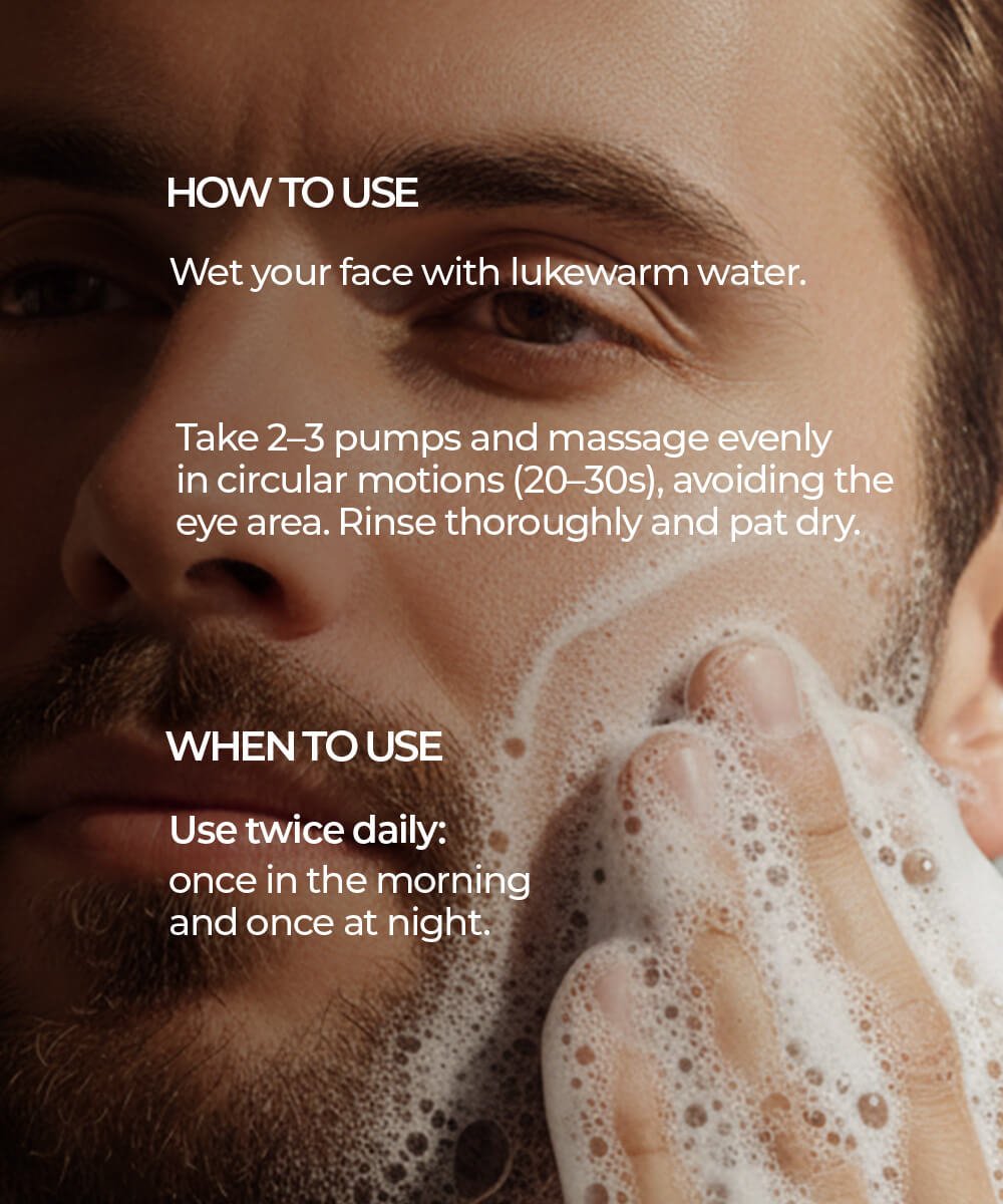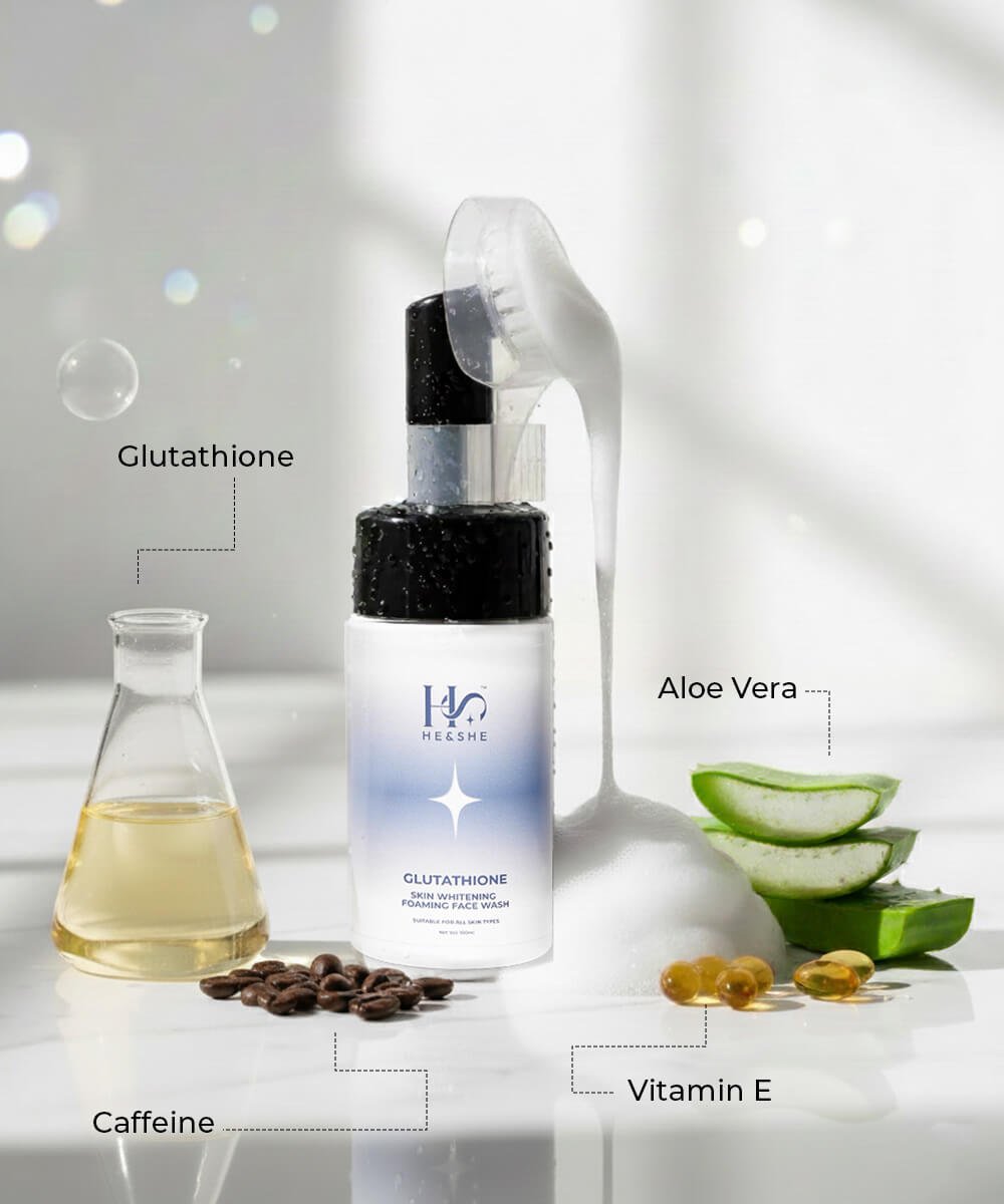 The star ingredient, Glutathione, is a natural antioxidant that works effectively to lighten and brighten skin tone, even out complexion, and improve overall skin quality. Combined with Salicylic Acid and Glycolic Acid, this foaming face wash gently exfoliates dead skin cells, unclogs pores, and helps reduce dullness. Niacinamide and Aloe Vera Extract provide soothing hydration, while Vitamin E and Hyaluronic Acid nourish and protect the skin from environmental stressors.